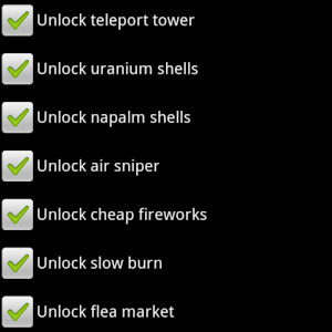 * Unlock ALL new rewards: uranium shells, napalm shells, air sniper, cheap fireworks, slow burn, flea market, scrambler, cannonball, bonus, shockwave, air burst!